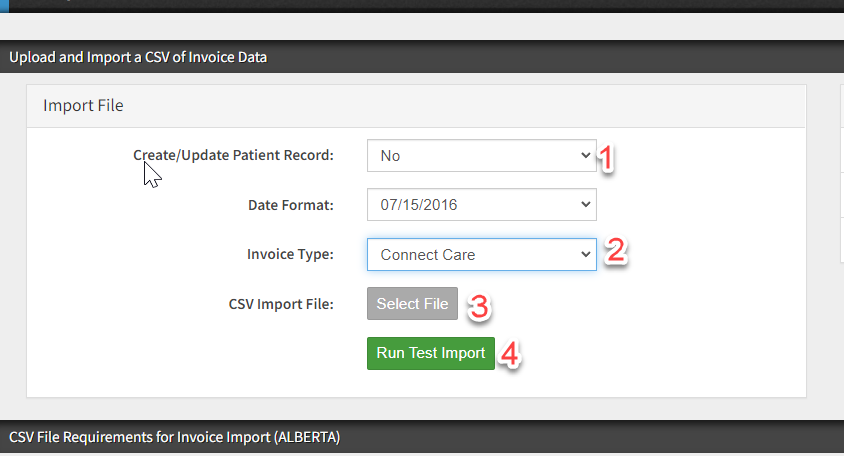 You will now be able to import a CSV file with all billing-related data extracted from Connect Care.