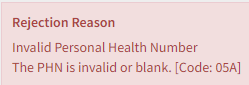 The Ministry's rejection reason message to you will be at the top of the claim, usually in red (see screenshot):