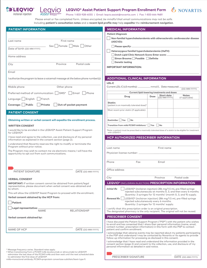 Leqvio (inclisiran) Assist PSP Enrolment – January 2025 Print
