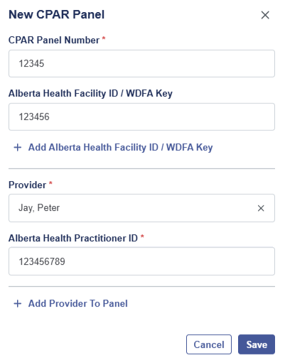 | CPAR Panel Number: | The Panel Number as provided by PPHS. This is a new number issued for the CPAR integration. |
