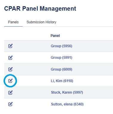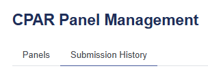 The CPAR Panel Management section however, is only available to users with the 'admin' role. The CPAR Panel Management allows users to create, modify and submit panels.