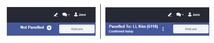 To verify if CPAR is enabled in your Juno EMR, navigate to any patient and look at the top right section. If CPAR is activated, it will display either “Not Paneled” or the current panel assignment.