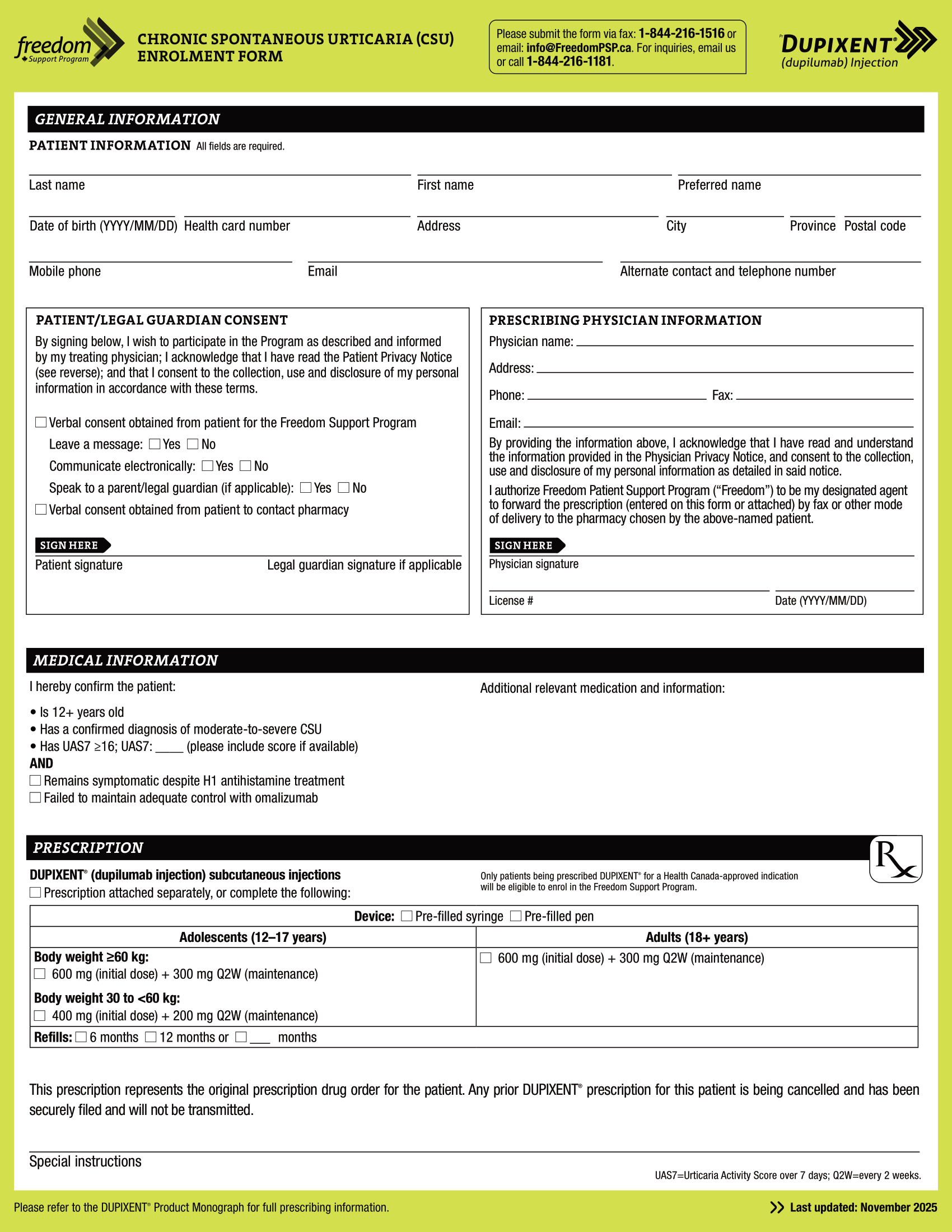 Dupixent (dupilumab) PSP Enrolment Form CSU EN 2025 Print