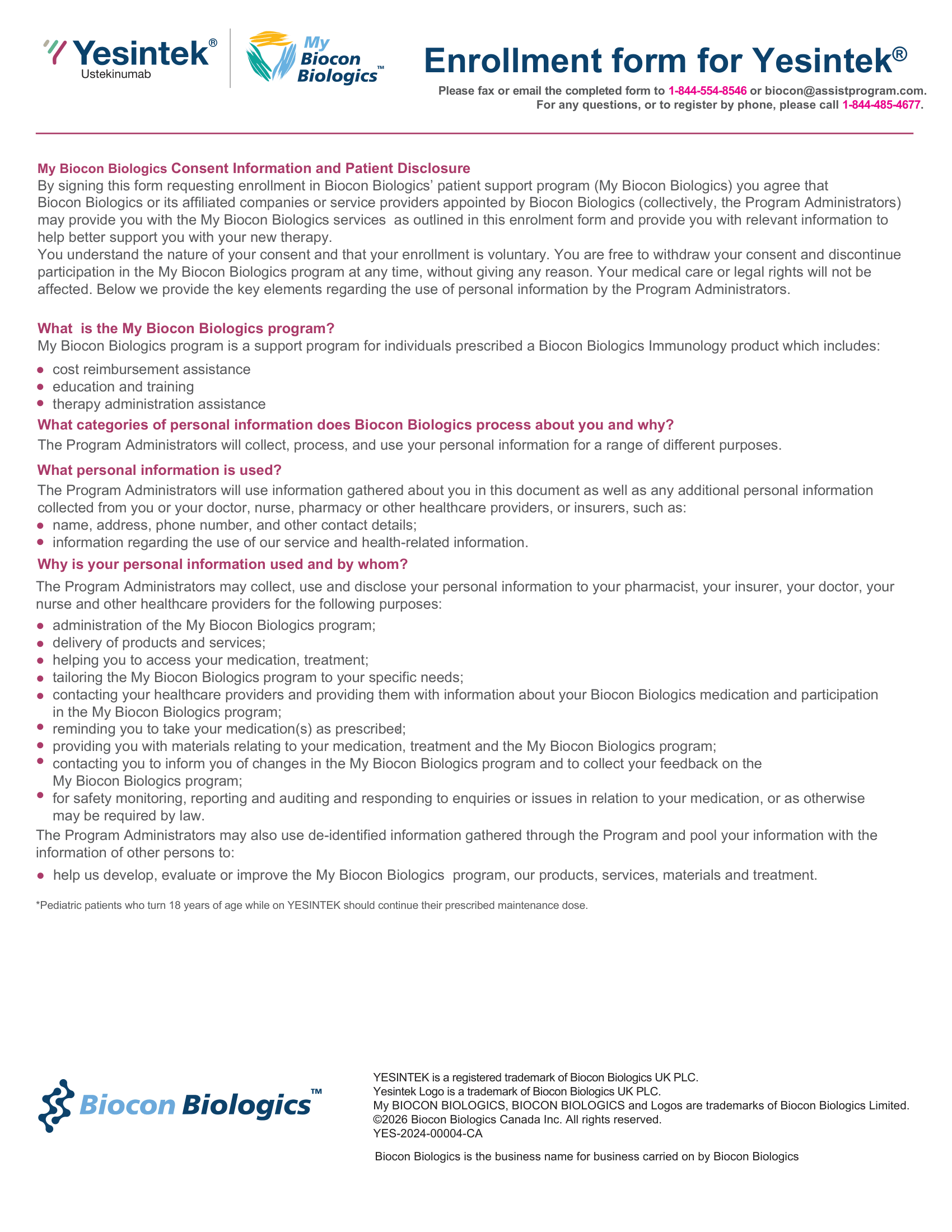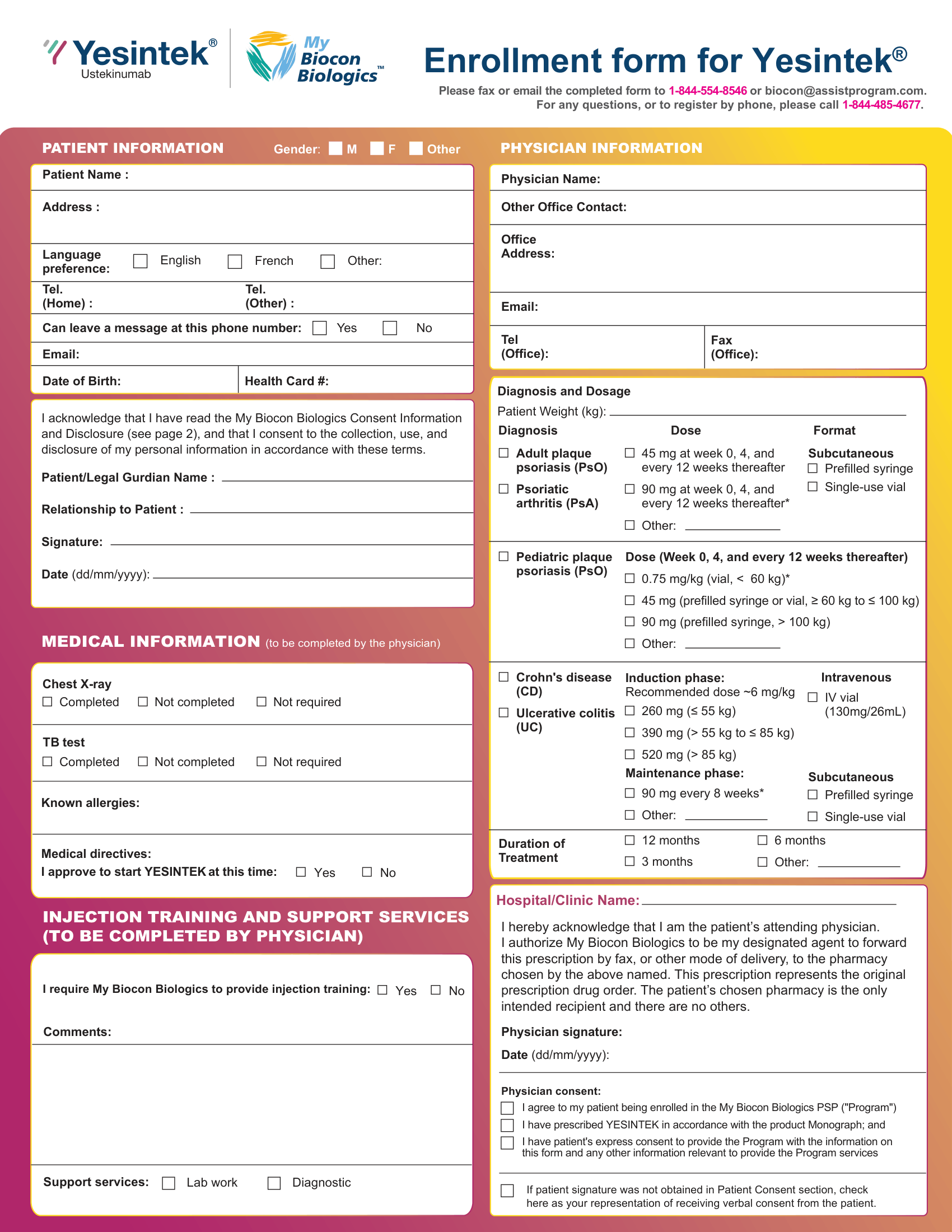 Yesintek Ustekinumab PSP Enrollment Form Print